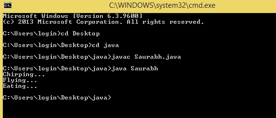 k.eat(); // here we are calling the method of Birds class
